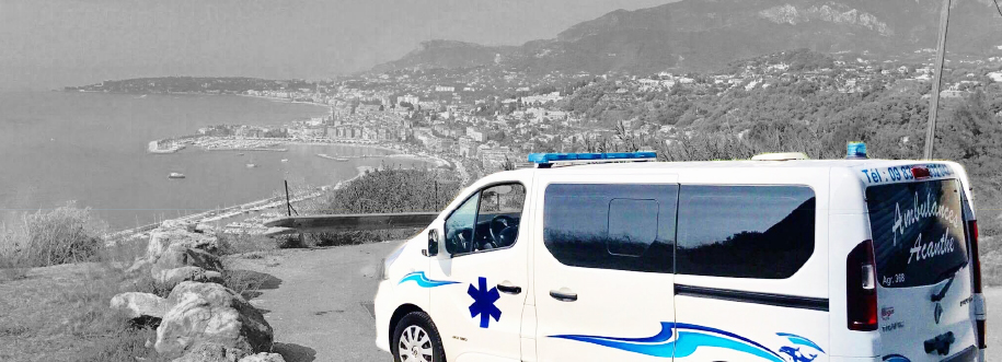 Les Ambulances Acanthe se spécialisent dans le transport toutes distances, en ambulance, taxi et VSL. Notre société dispose d'ambulances, VSL (véhicule sanitaire léger) et taxi conventionné très récents et hauts de gamme pour vous transporter à l’hôpital de Menton, Roquebrune Cap Martin, Carnoles, Monaco, Castellar, Gorbio, Sainte Agnès, Cap d'Ail, Nice..., dans une clinique, un centre de rééducation ou un centre de convalescence. Les véhicules sont climatisés. Notre équipe d'ambulanciers a reçu les formations adéquates pour poser les gestes qui s’imposent. Ambulance Acanthe Menton peut également réaliser des rapatriements sanitaires. Nous sommes situés à Roquebrune-Cap-Martin à la frontière de Menton et Monaco dans le 06 département des Alpes Maritimes et desservons des localités avoisinantes telles que Menton, Roquebrune Cap Martin, Carnoles, Monaco, Castellar, Gorbio, Sainte Agnès, Cap d'Ail, Nice... Sur demande, nous intervenons également pour le transport de personnes sur toute la France.